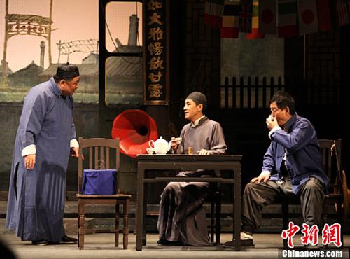 1956年,老舍創(chuàng)作了三幕話劇《茶館》,曹禺將其稱為中國(guó)話劇史上的瑰寶。