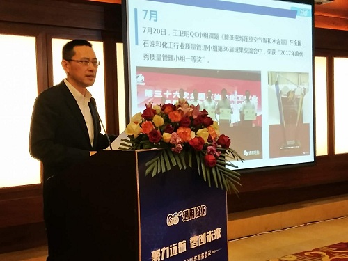 通用股份董事長顧萃先生在會議上作了“賦能2018”的重要主題演講。回首2017,顧董對宏觀經(jīng)濟和行業(yè)情況進行了生動解讀。展望2018,顧董以“大、新、快、鏈”四個字闡述了當下時代的發(fā)展趨勢,探討了智能化以及創(chuàng)新思維對未來工業(yè)和生活的深遠影響。通用股份將從“制造、產(chǎn)品、營銷、管理、服務(wù)”五大賦能促進變革發(fā)展,搶占先發(fā)優(yōu)勢,智能制造升級,全球化視野布局,全方位提高效率,做最好的自己。
