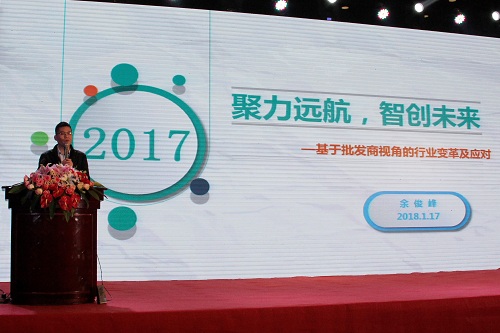 四川鑫蜀通輪胎有限公司總經(jīng)理余俊峰在大會上分享了“基于批發(fā)商視角的行業(yè)變革及應(yīng)對”觀點。2017年,鑫蜀通在“不只埋頭拉車,更要抬頭看路”、“錘煉內(nèi)功,鍛造軟實力”、“緊跟通用發(fā)展步伐,凝心聚力”這三個層面上辛勤開拓,積極應(yīng)對行業(yè)變革,不斷探索創(chuàng)新發(fā)展機遇,創(chuàng)造了屬于他自己的輝煌。